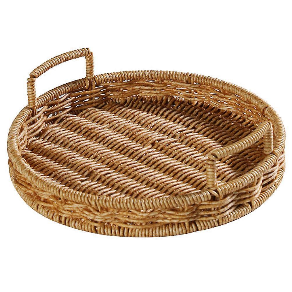 Woven Storage Basket With Handle Imitation Rattan Bread Basket Snack Serving Tray