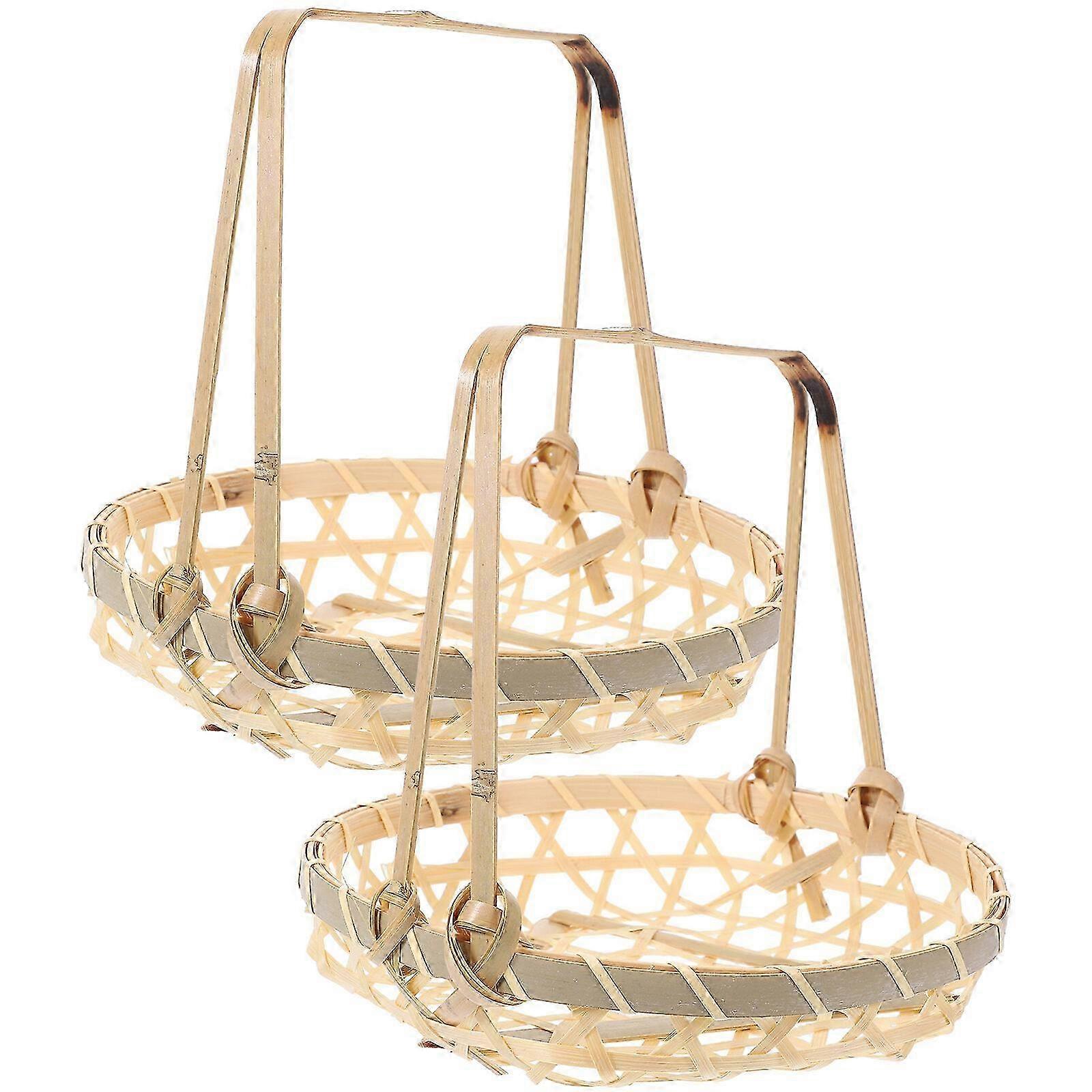 2Pcs Handmade Woven Fruit Basket with Handle, Portable Storage 16X16X14.5cm