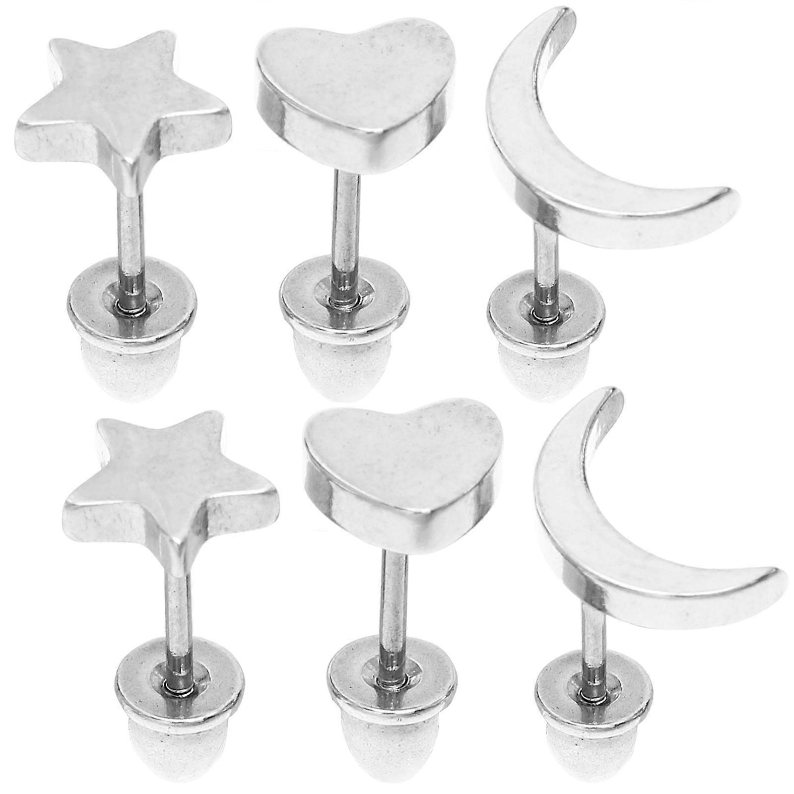 3 Pairs Minimalist Stud Earrings with Heart, Star & Moon Designs – Hypoallergenic Jewelry for Everyday & Special Occasions