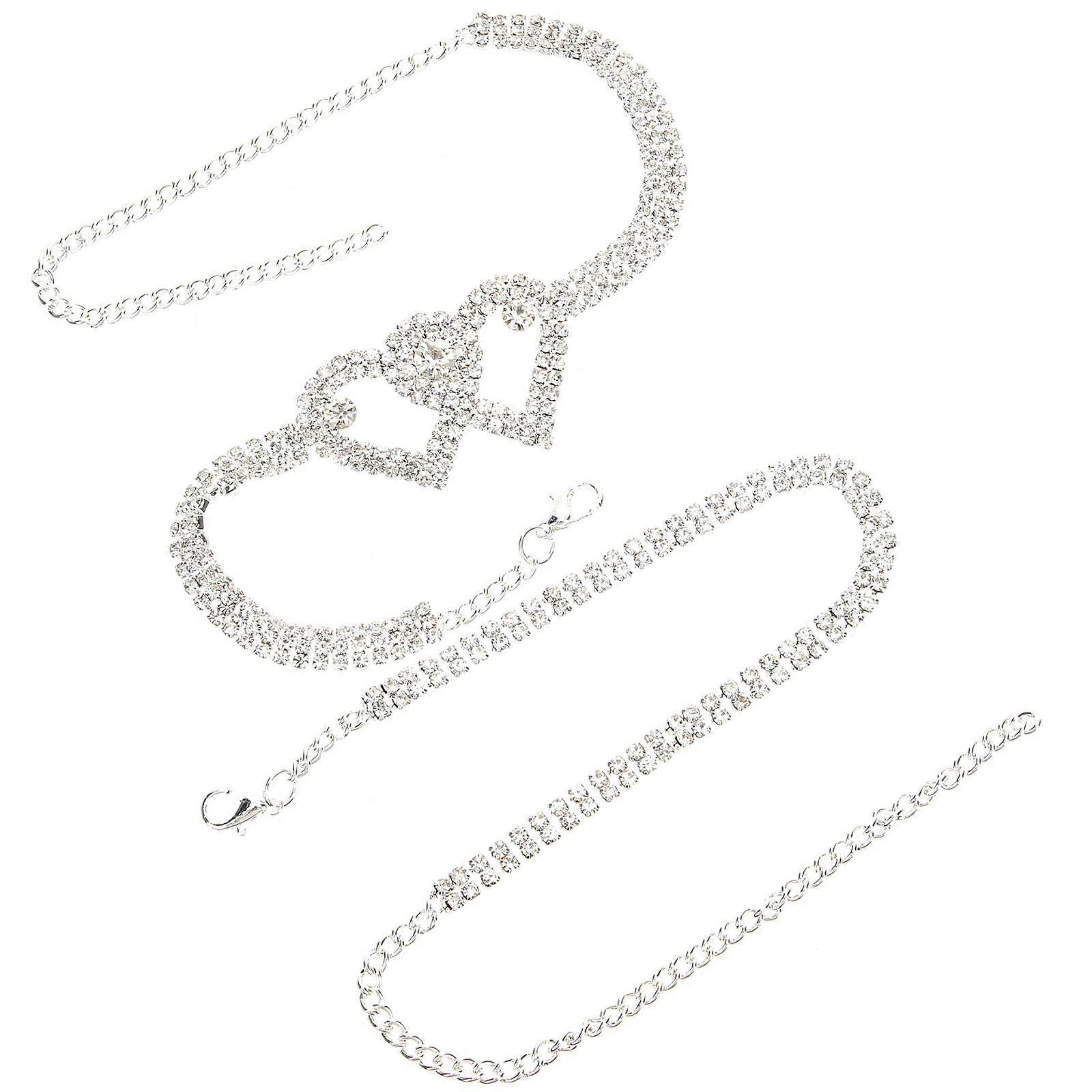 Heart Ankle Bracelet Set Shiny Rhinestone Foot Jewelry for Women, Durable & Stylish for Summer Beach Wear