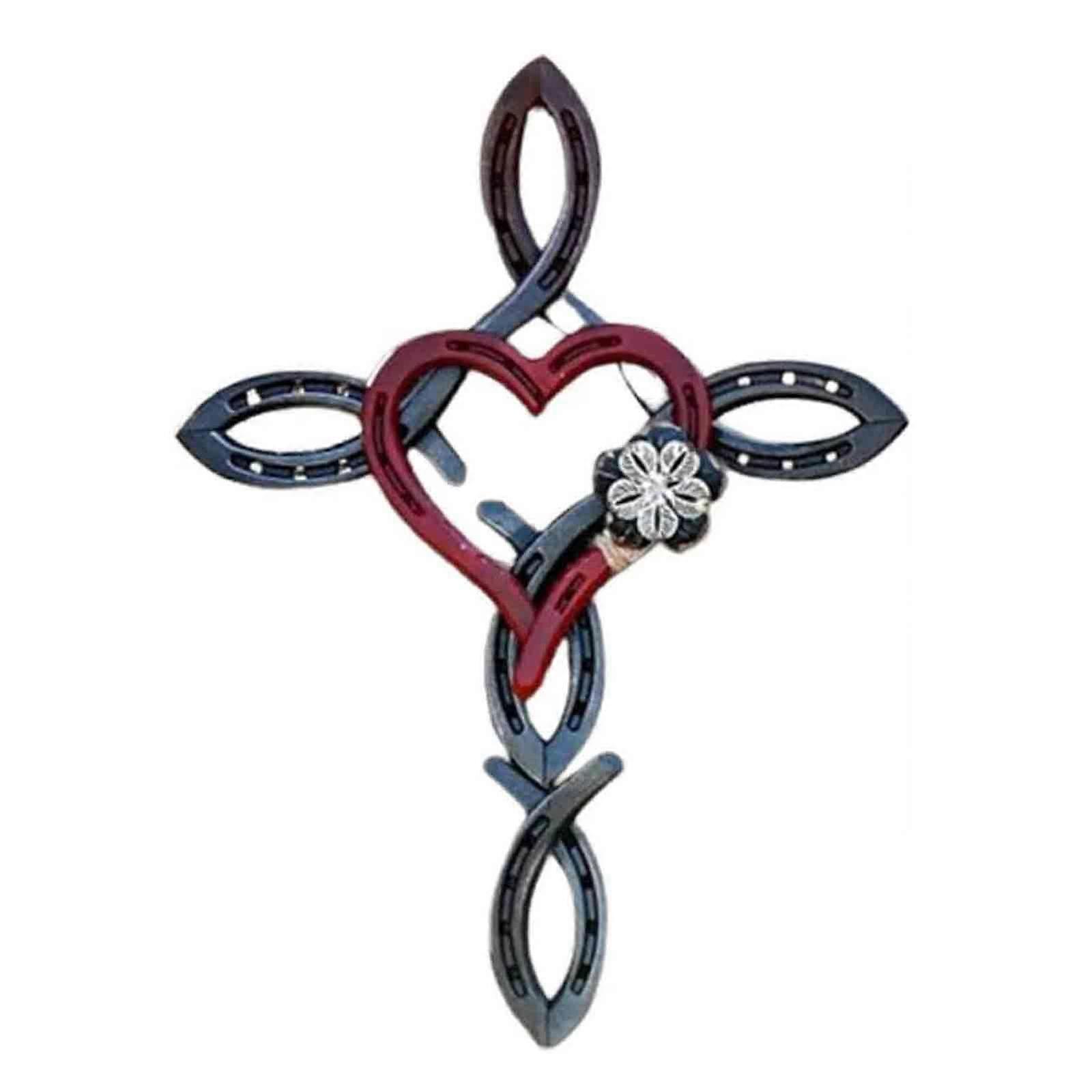 Natural Horseshoe Cross with Heart Sculpture Metal Wall Art Home Hanging,Promotion