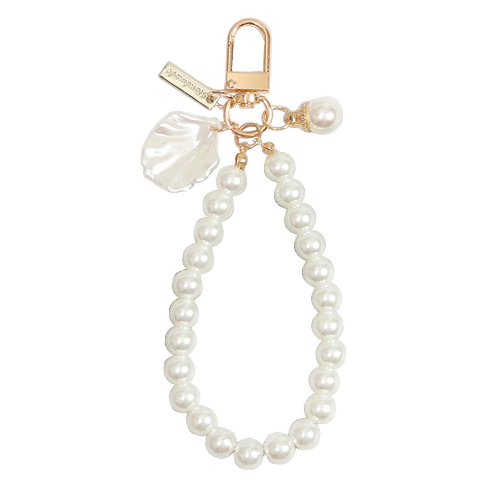 Heart Pearl Keychain Phone Chain Pendant Shell Pearl Bag Keyring Hanging Ornament Car Key-Holder-Decor for Girls Women