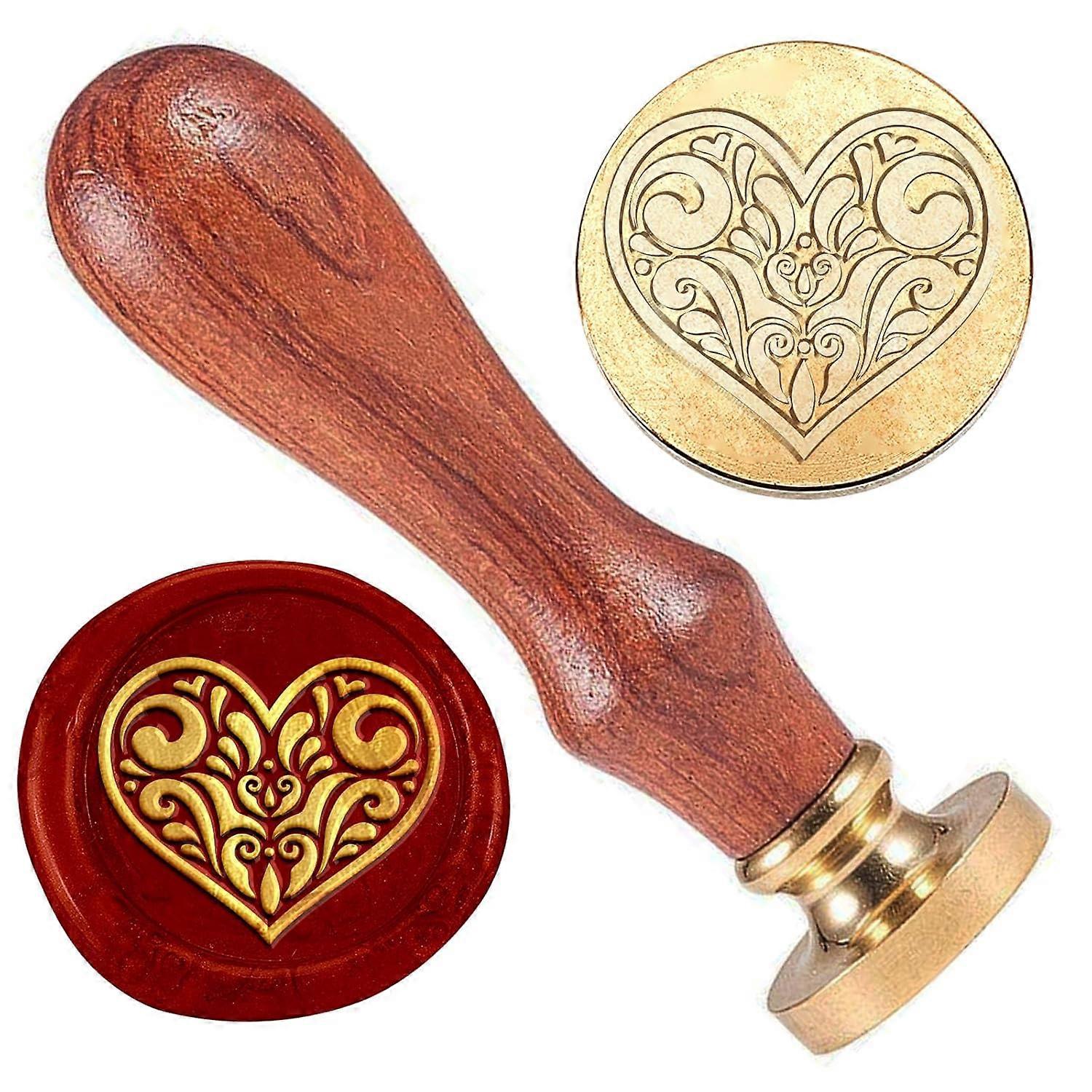 Heart Wax Sealing Stamp 1" Brass Wax Seal Stamp Head with Wooden Handle Vintage Heart Wax Stamp for Invitation Cards Gift Wrapping Envelopes Wine Pack