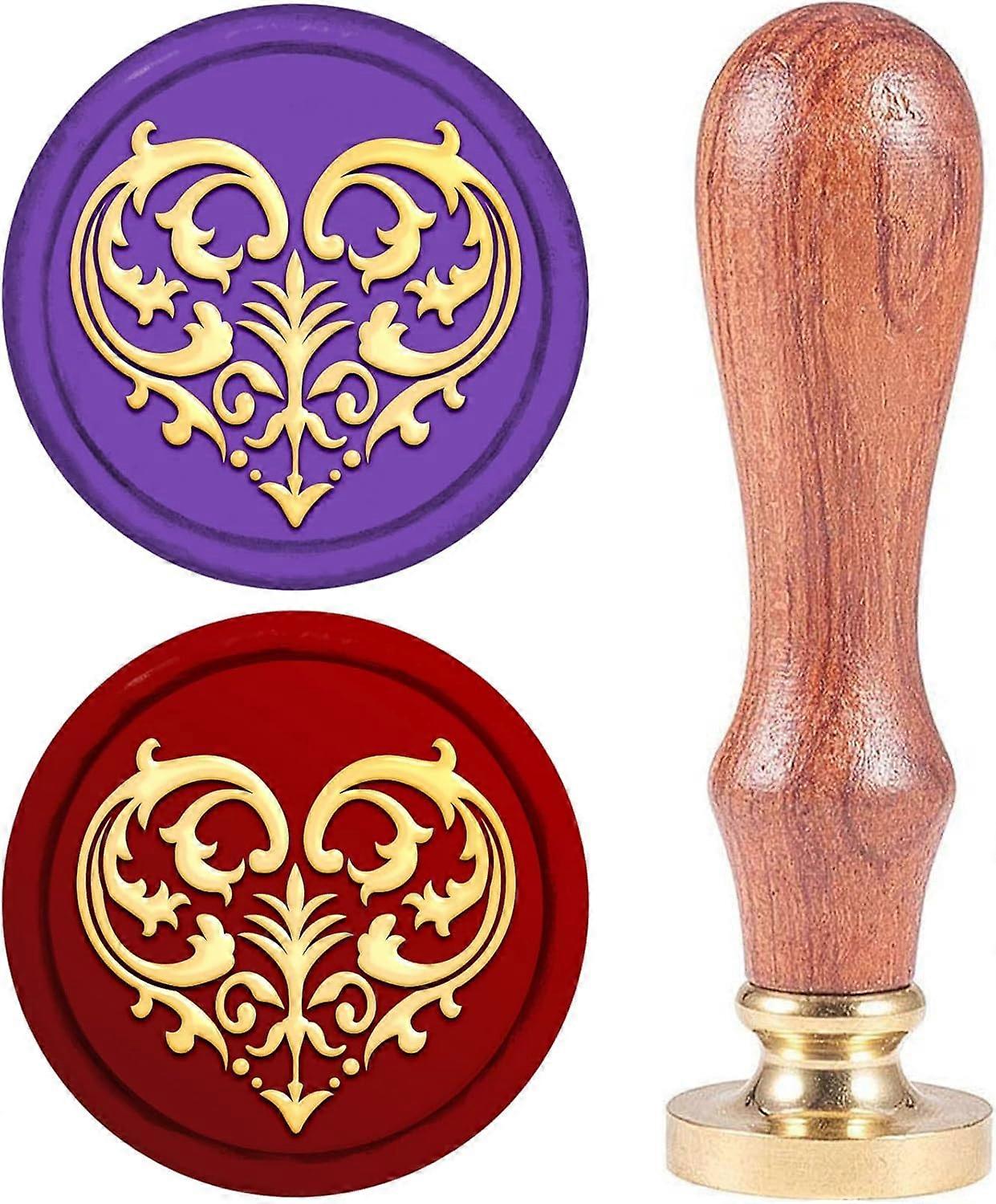 Heart Wax Seal Stamp Copper 25mm Vintage Detachable Sealing Stamp Brass Pattern Stamp Head with Envelope Wooden Handle Letter Invitation Card Wedding