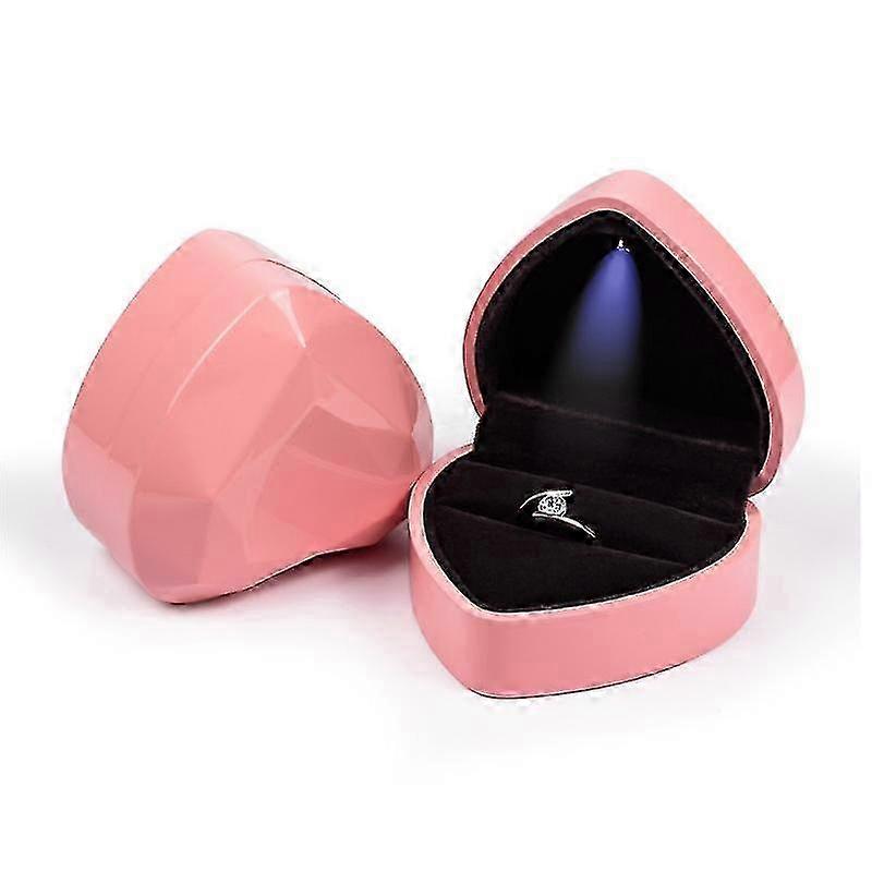 Heart-shaped Led Wedding Ring Box With Display Storage Jewelry Case Velvet