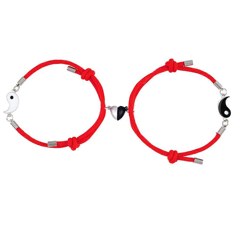 Heart-Shaped Couple Bracelets Alloy Rope Material Daily Use Friends 2Pcs