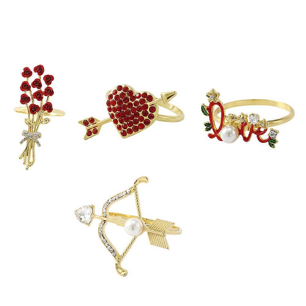Heart Shaped Napkin Rings Dining Table Decorations Golden 4x4.4cm Table Decoration 4Pcs