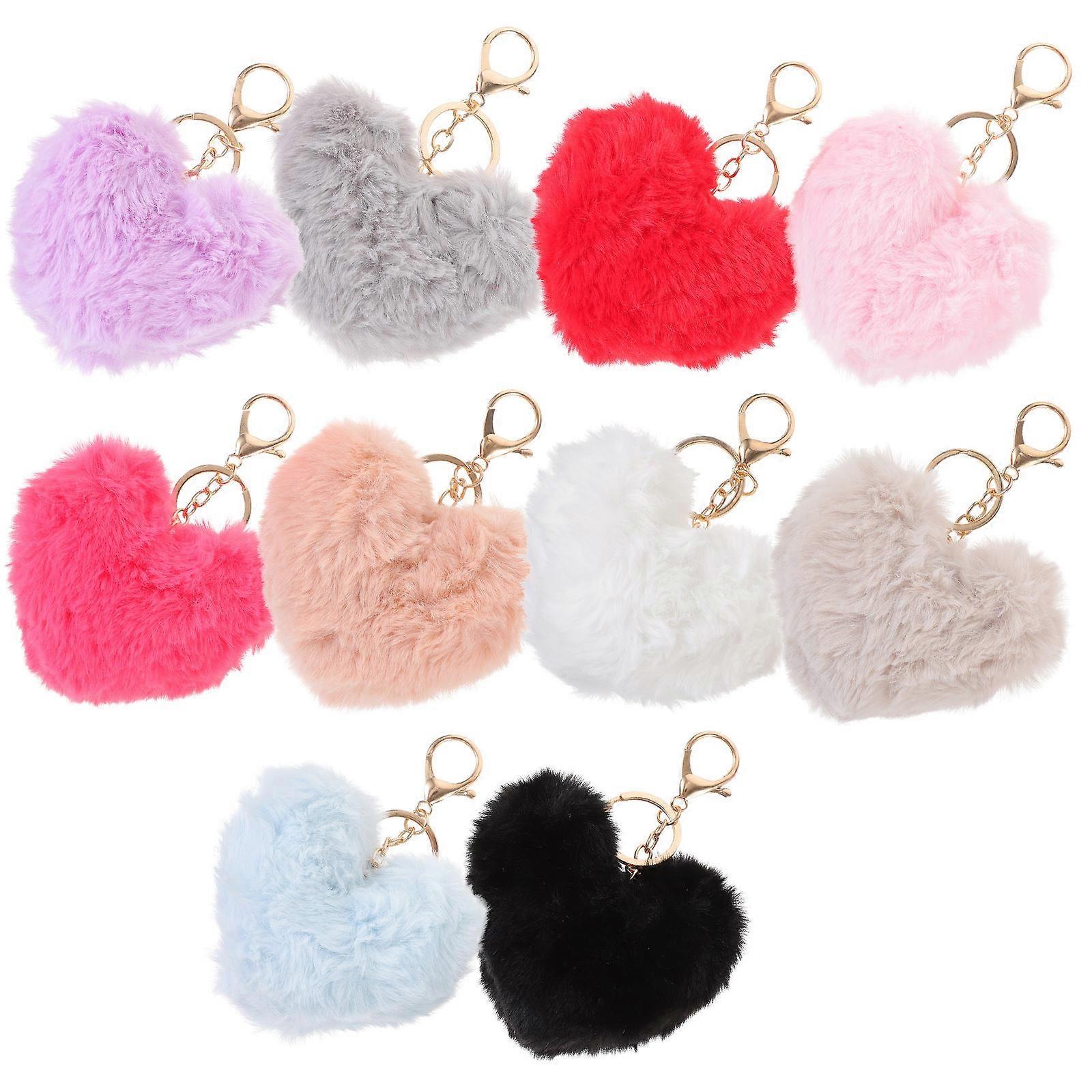 This heart keychain is made of solid material, which can withstand long-lasting use. Features the artificial wool material, which has high durability, not easy to deform. Fine workmanship, ensures practicality. Features -Color:Assorted Color -Material:Artificial wool -Size:10.00X9.00X4.00cm/3.93X3.54X1.57in -This key chain is made of soft and comfortable faux wool material, providing a cozy and pleasant touch. -The heart shape design of this keychain is not only cute but also fashionable, adding a touch of sweetness to your style. -This key ring offers styling possibilities to match your outfit or mood. -Not only a stylish accessory but also a multi-functional tool that can be used for keys, bags, and more. - craftsmanship of this keyring ensures its durability and reliability, making it a long-lasting and practical item. Package list: 10 x keychains
