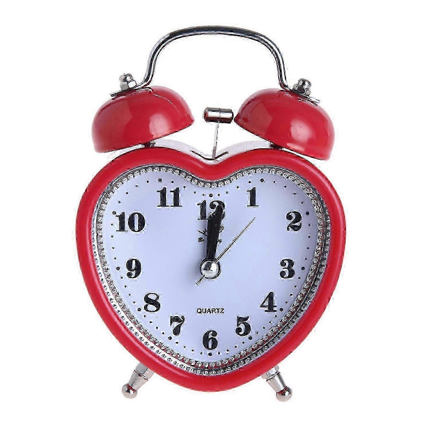 Heart Shape Bell Alarm Clock No Ticking Silent Night Light For Time Clocks For Kids Girls Bedroom Sn