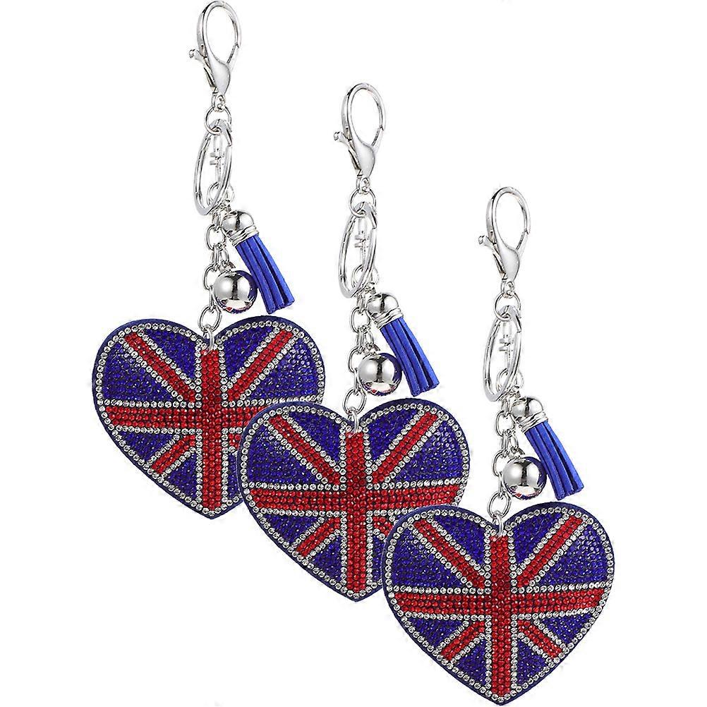 Heart-Shaped Pendant Keychains National Flag Keyring Decorative Keychain For Any Occasion Rhinestone 3Pcs
