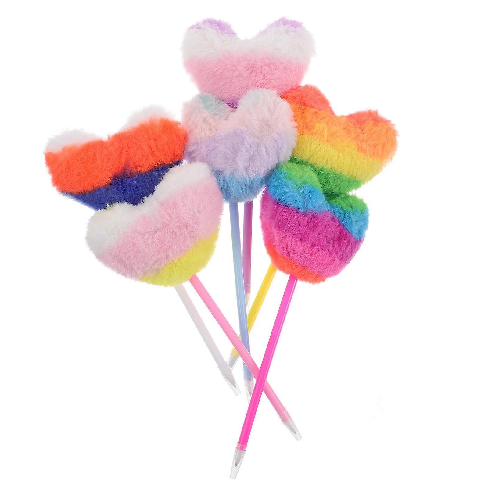 Heart Shape Ballpoint Pen Fluffy Pom Pom Pens Assorted Color For School Office Party Supplies Writing Signing Documents 6Pcs