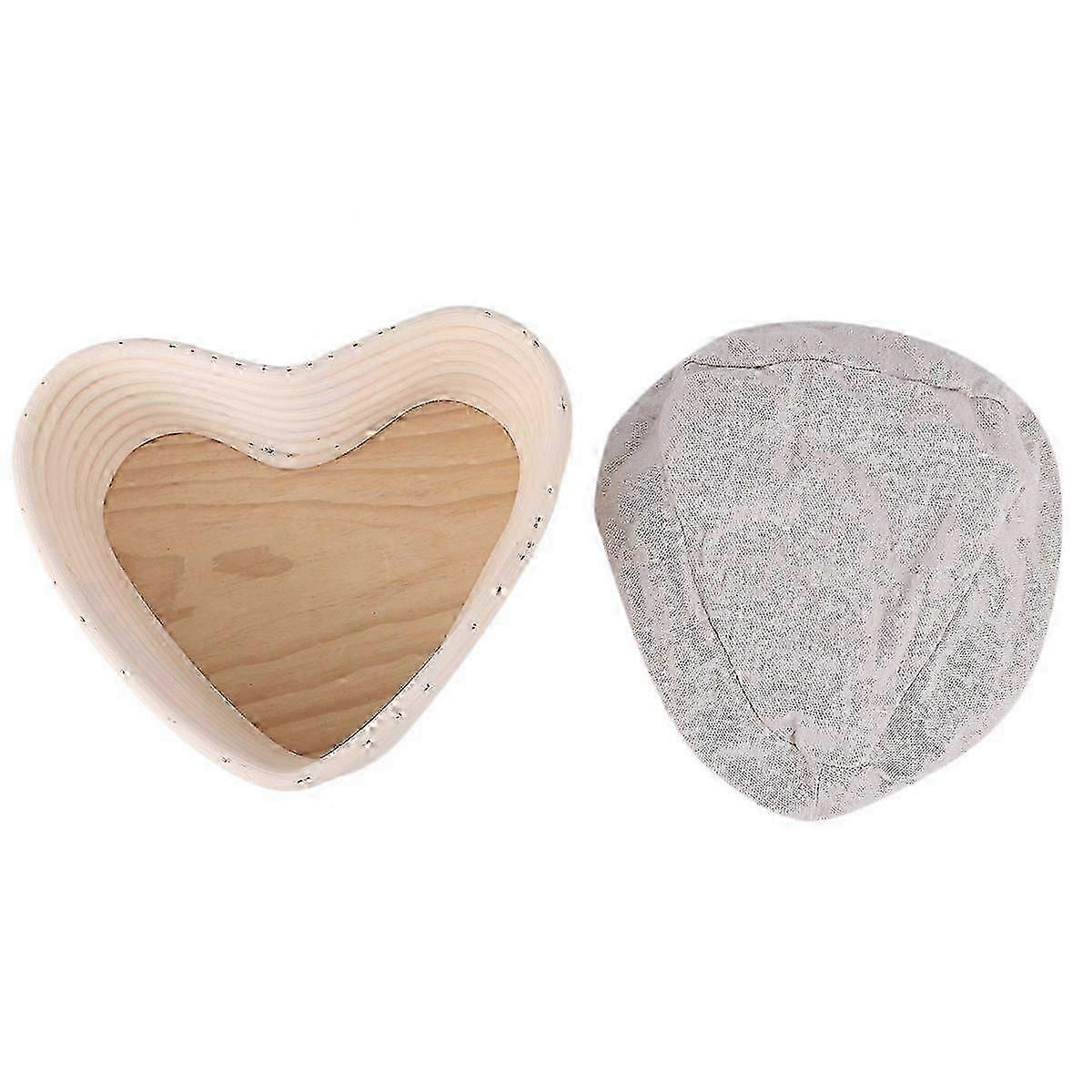 1pc Heart-Shaped Rattan Bread Basket with Cloth Cover for Baking (Khaki, 21.5x19x7.5cm)