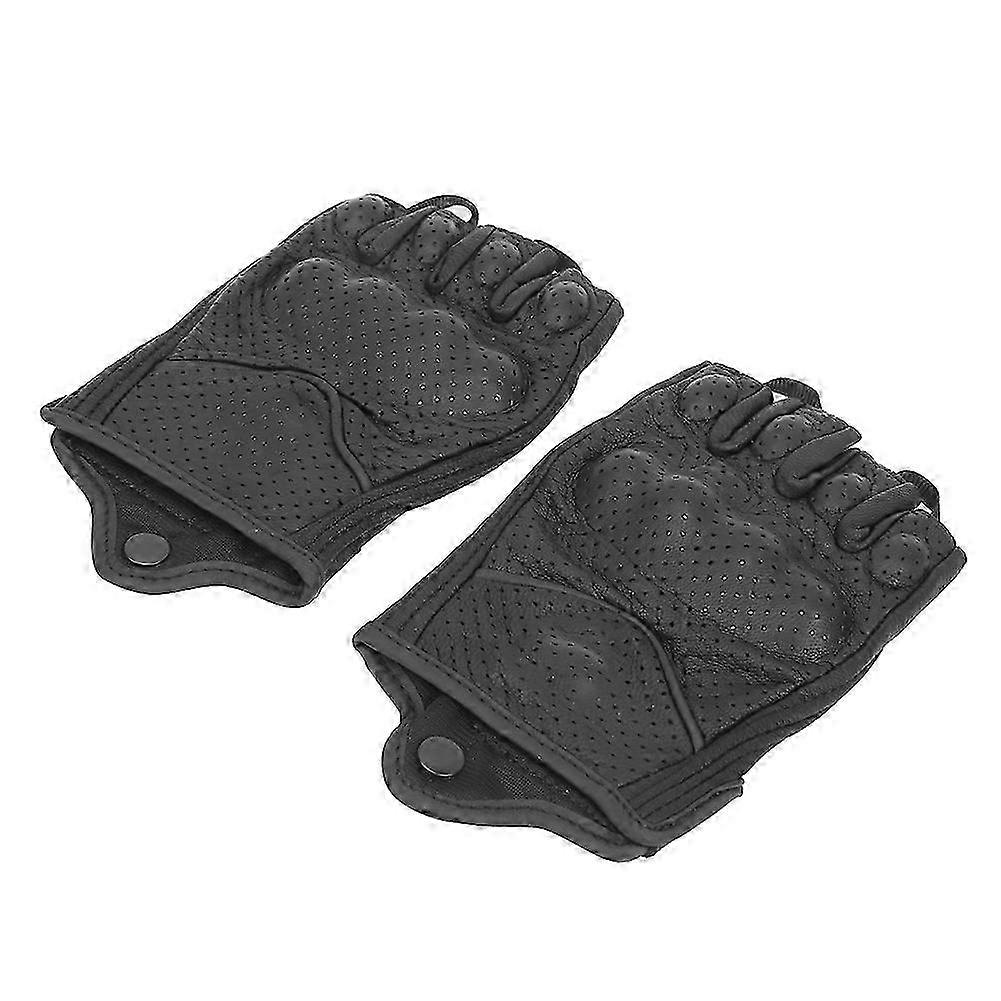 Half Fingers Motorcycle Gloves Leather Breathable Anti Slip Protective Riding Cycling Hand WearM