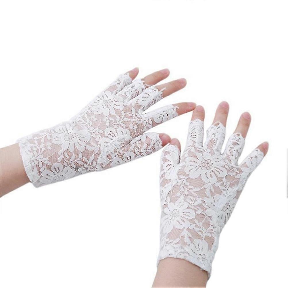 Half-Finger Gloves No Fingertips White Lace Mittens Sunscreen Protection Ladies Fashion Accessory 1Pair