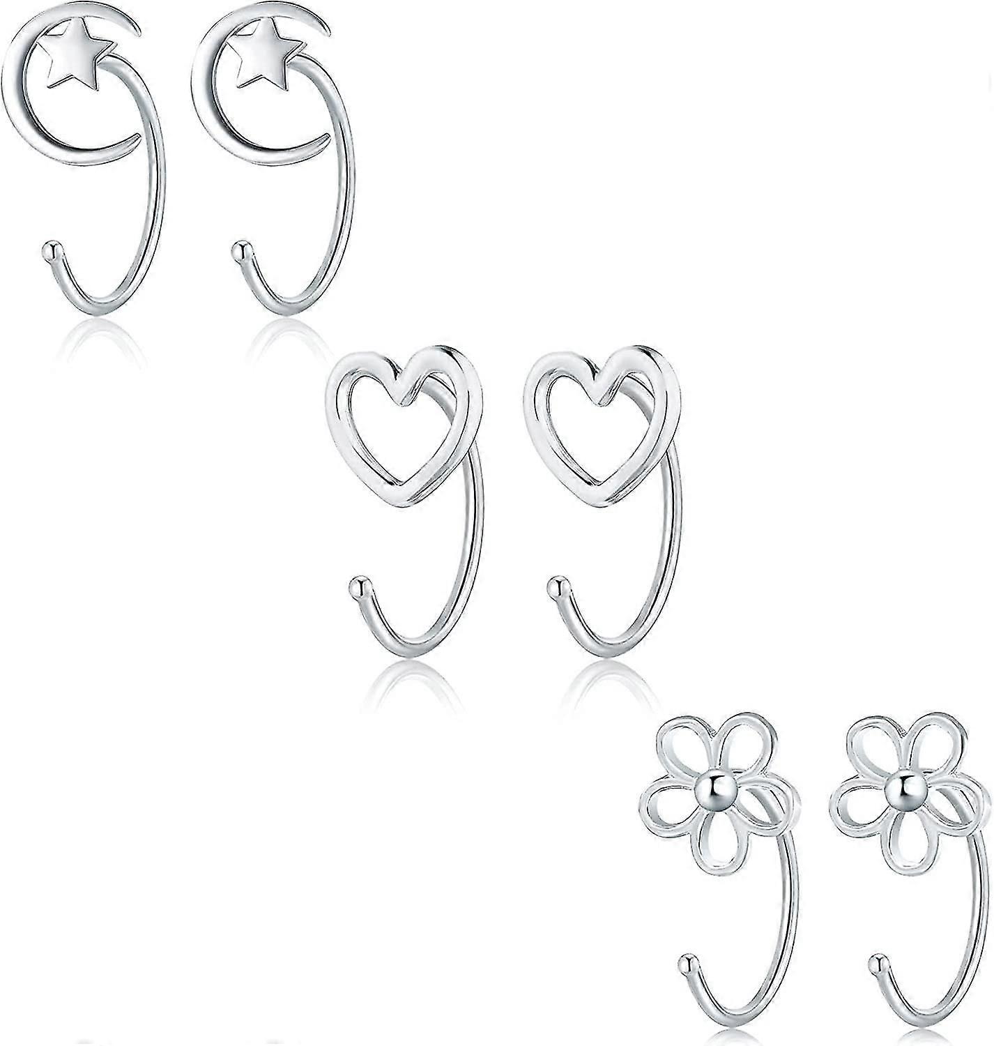 3 Pairs Half Hoop Earrings Sterling Silver Small Open Huggie Hoop Earrings Gift