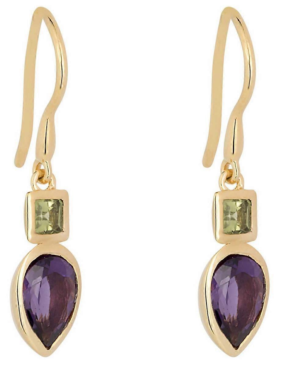 Beginnings Iris Petal Drop Earrings - Gold/Purple/Green