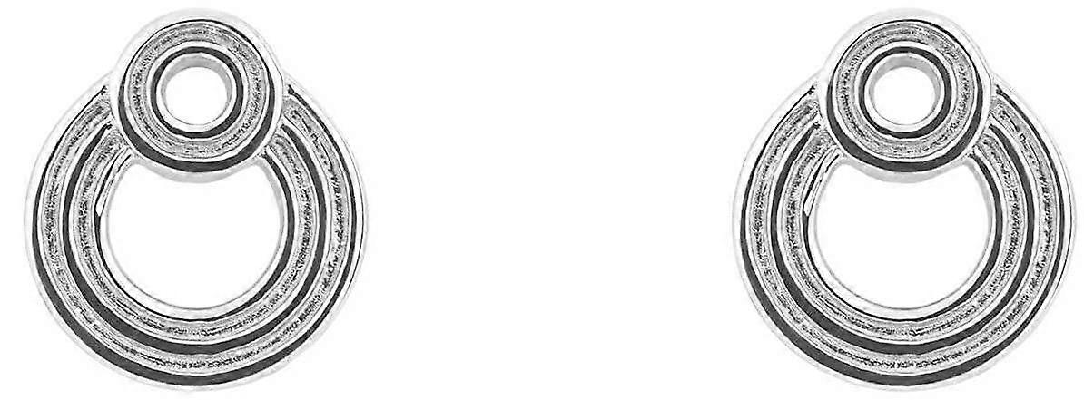 Beginnings Ridged Double Open Circle Stud Earrings - Silver