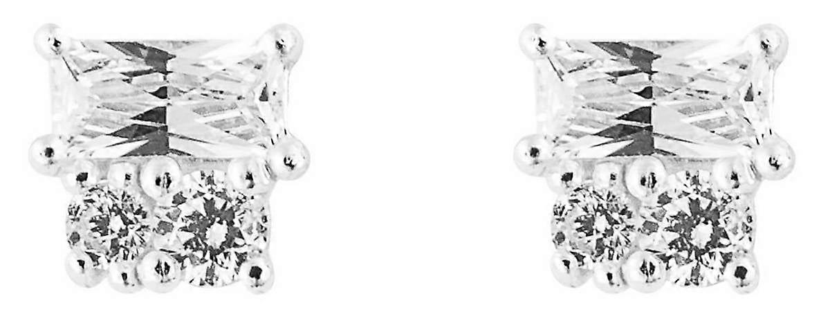 Beginnings Baguette and Round Gemstone Stud Earrings - Silver