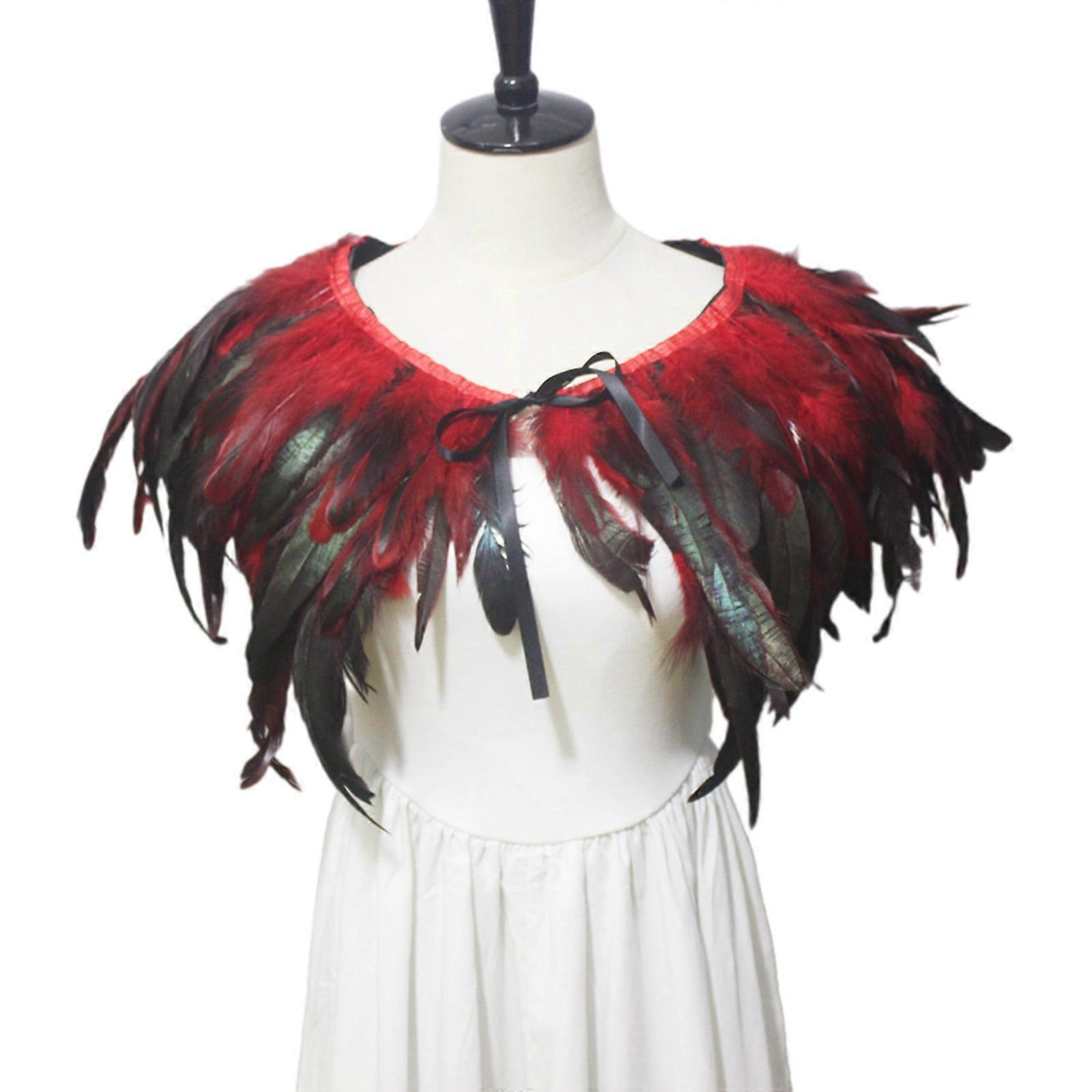 Victorians Gothic Feather Shawl Shrug Detachable False Collar Shoulder Wrap Capelet with Ribbon Tie Cosplay Costume Red