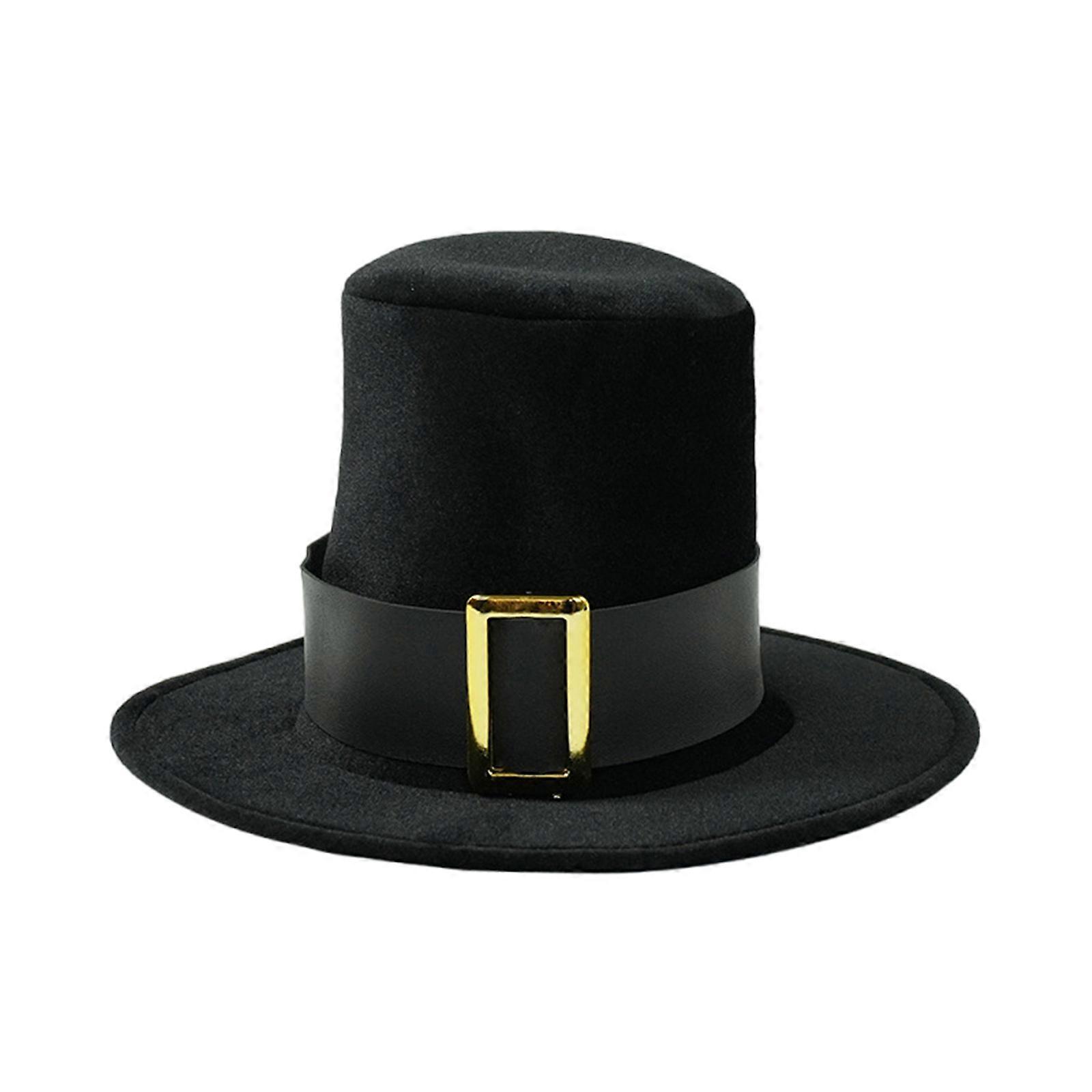 Stylish Black Tall Hat with Gold Buckles Ribbon for Victorian Costume Event Halloween Party Gathering Dressingup Headwear