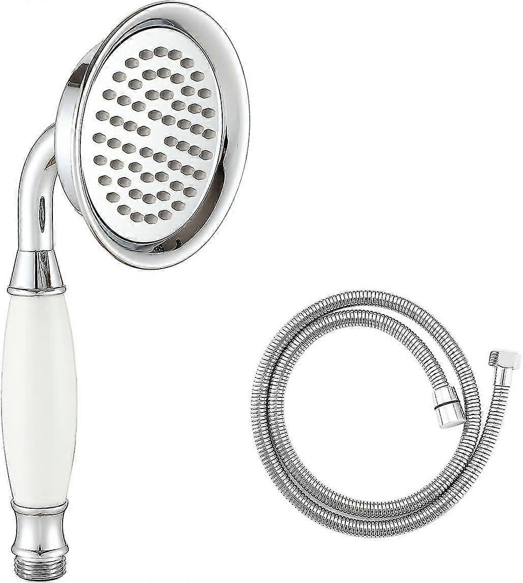 Victorian Shower Head and 150cm Hose Traditional Brass and Ceramic for Bathroom