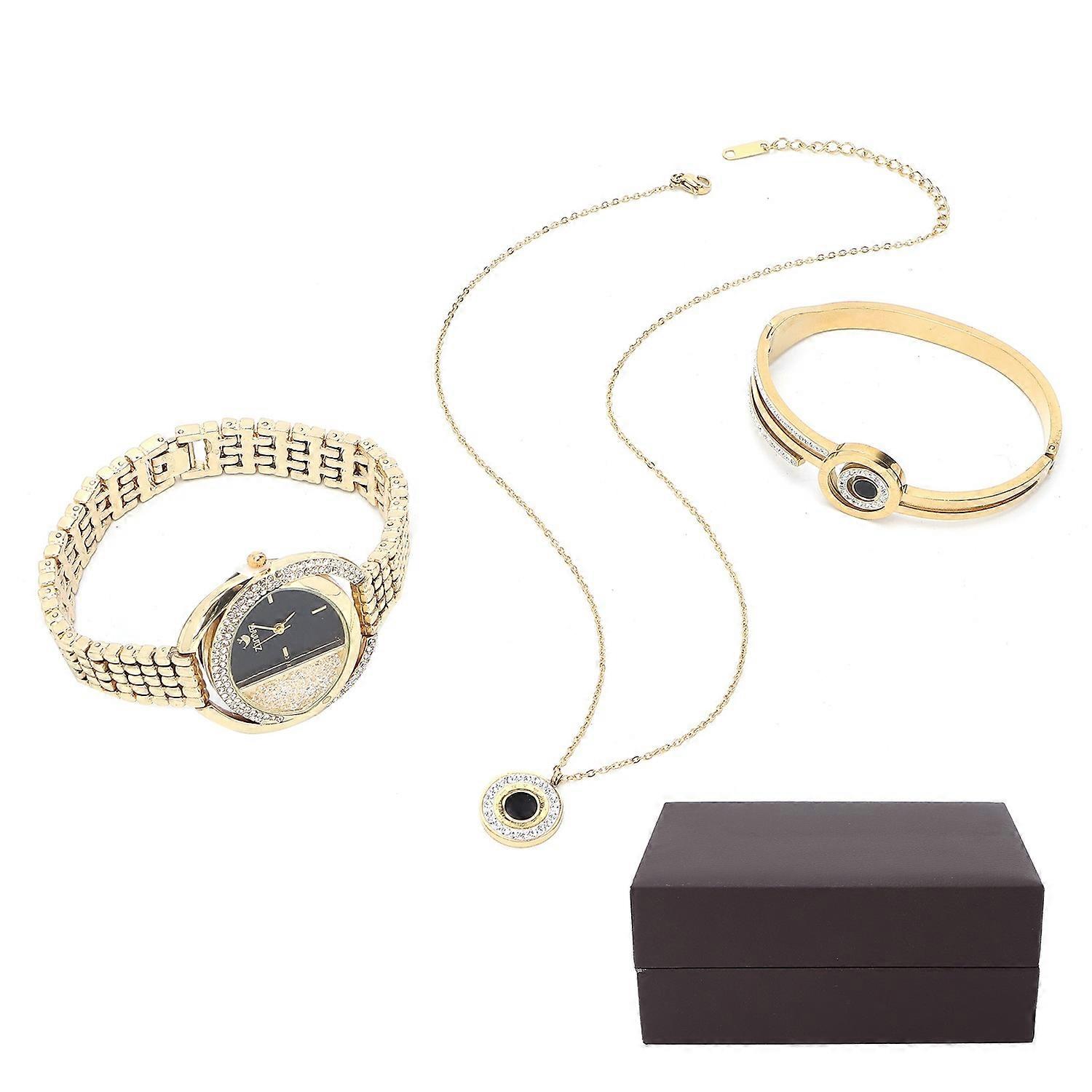 Business Style Women Watch Bracelet Necklace Set Anniversary Birthday Gift Jewelry Set Gold
