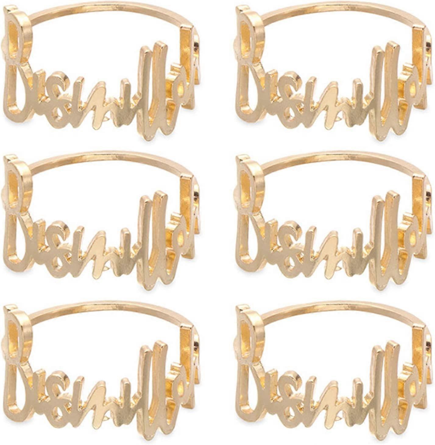 Bismillah Letter Metal Napkin Ring Set Alphabet Napkin Buckles Holder Table Decor for Wedding, Party, Ramadan, Banquet (Gold) 6pcs)