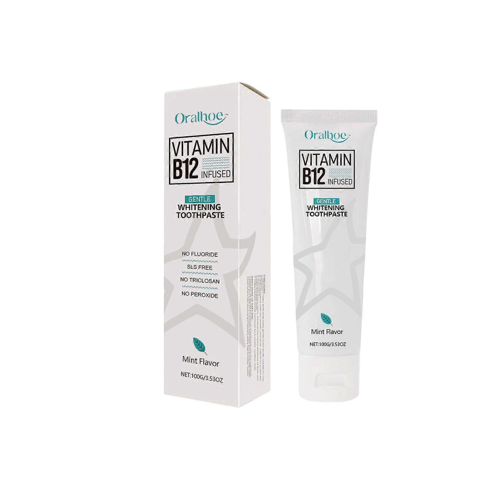 Vitamin B12 Whitening Toothpaste, Deep Cleansing Toothpaste, Fluoride-Free Formula for Sensitive Teeth, Gentle and Effective Formula, Mint Flavor