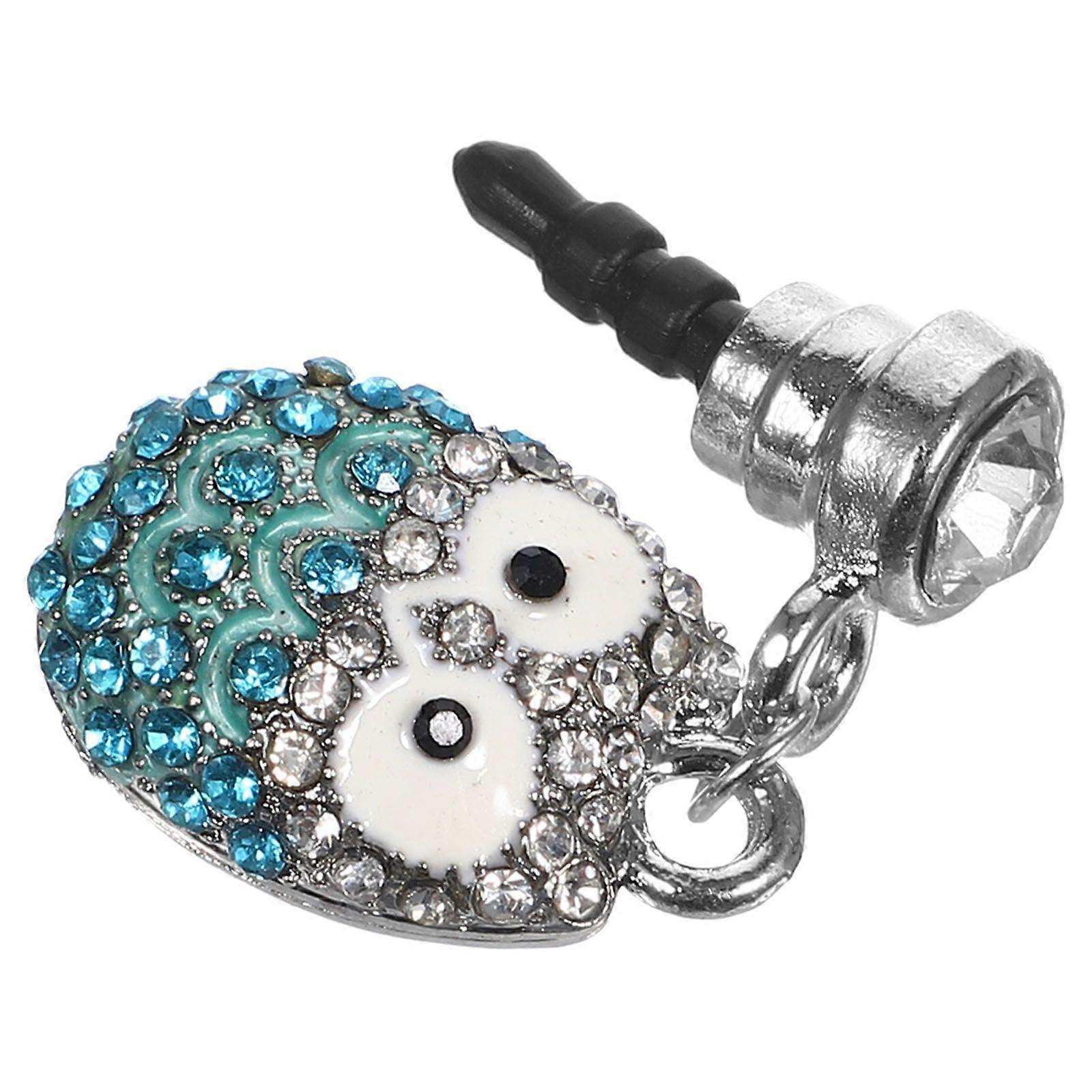 Big Eyes Owl 3.5mm Earphone Jack Anti Dust Plug with Diamonds Mobile Phone Earphone Jack Accessories (Blue)