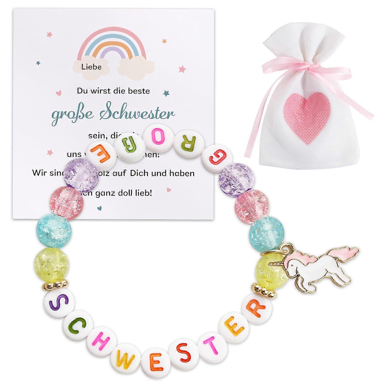 Big Sister Bracelet Gift, Elastic Pearl Bracelet with Card and Fabric Bag