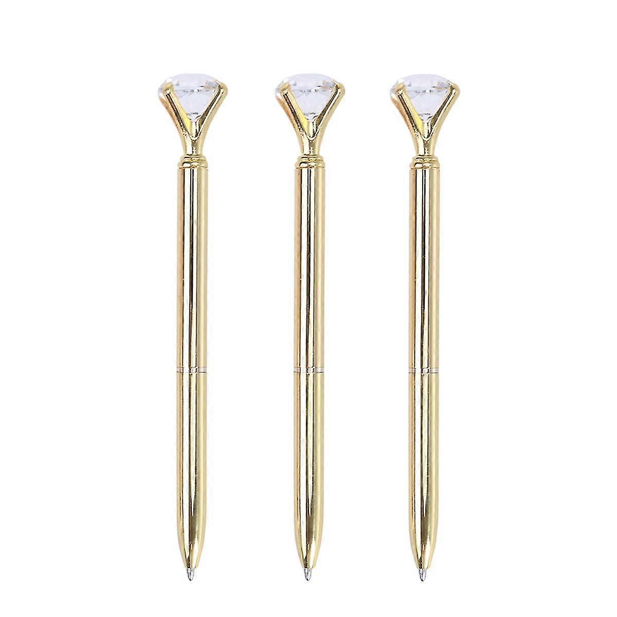 3Pcs Pen with Big Diamond Crystal Metal Ballpoint Pen School Office Supplies (Gold) JU