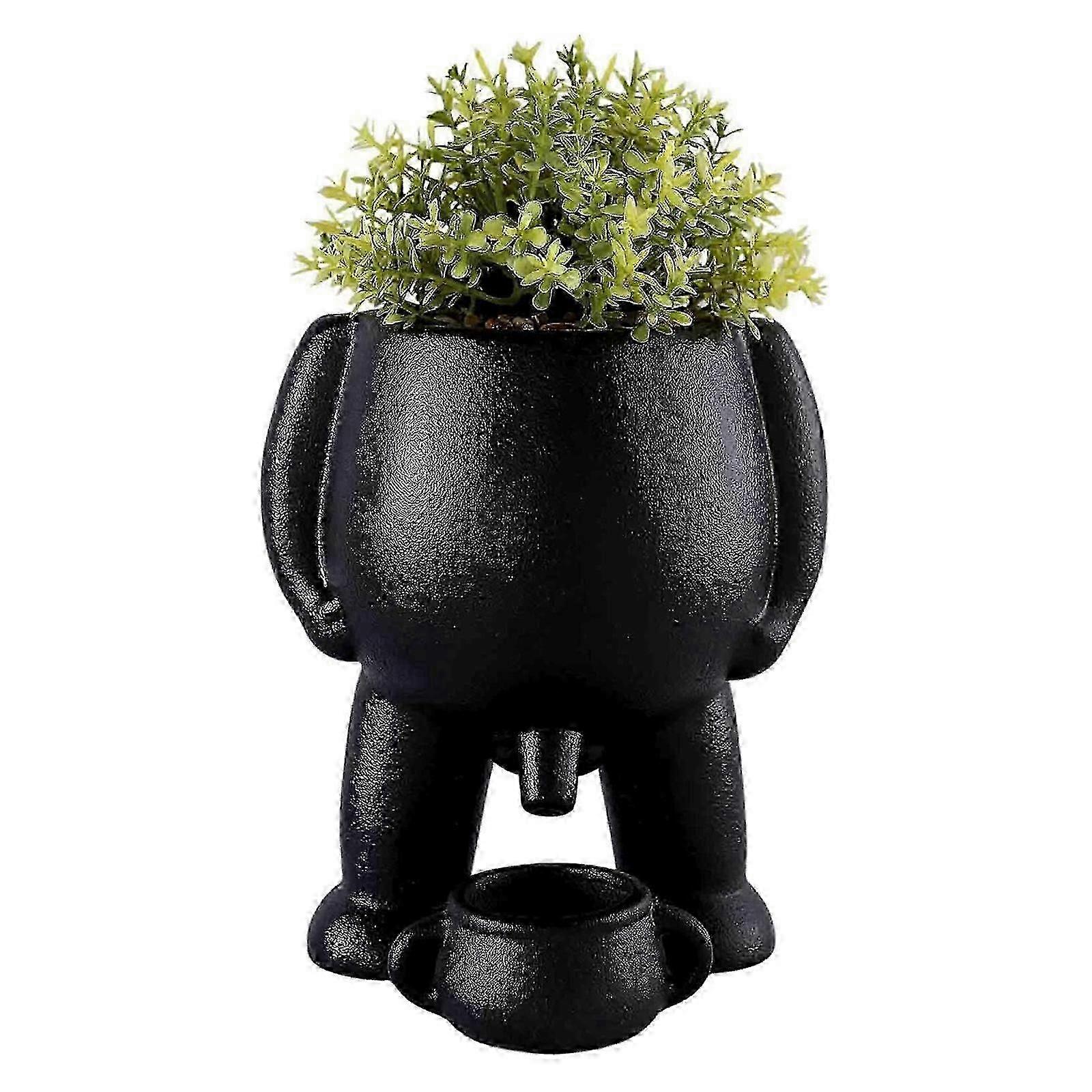 Big Belly Robot Succulent Pot, Black Planter, No Green Plants, Decorblack