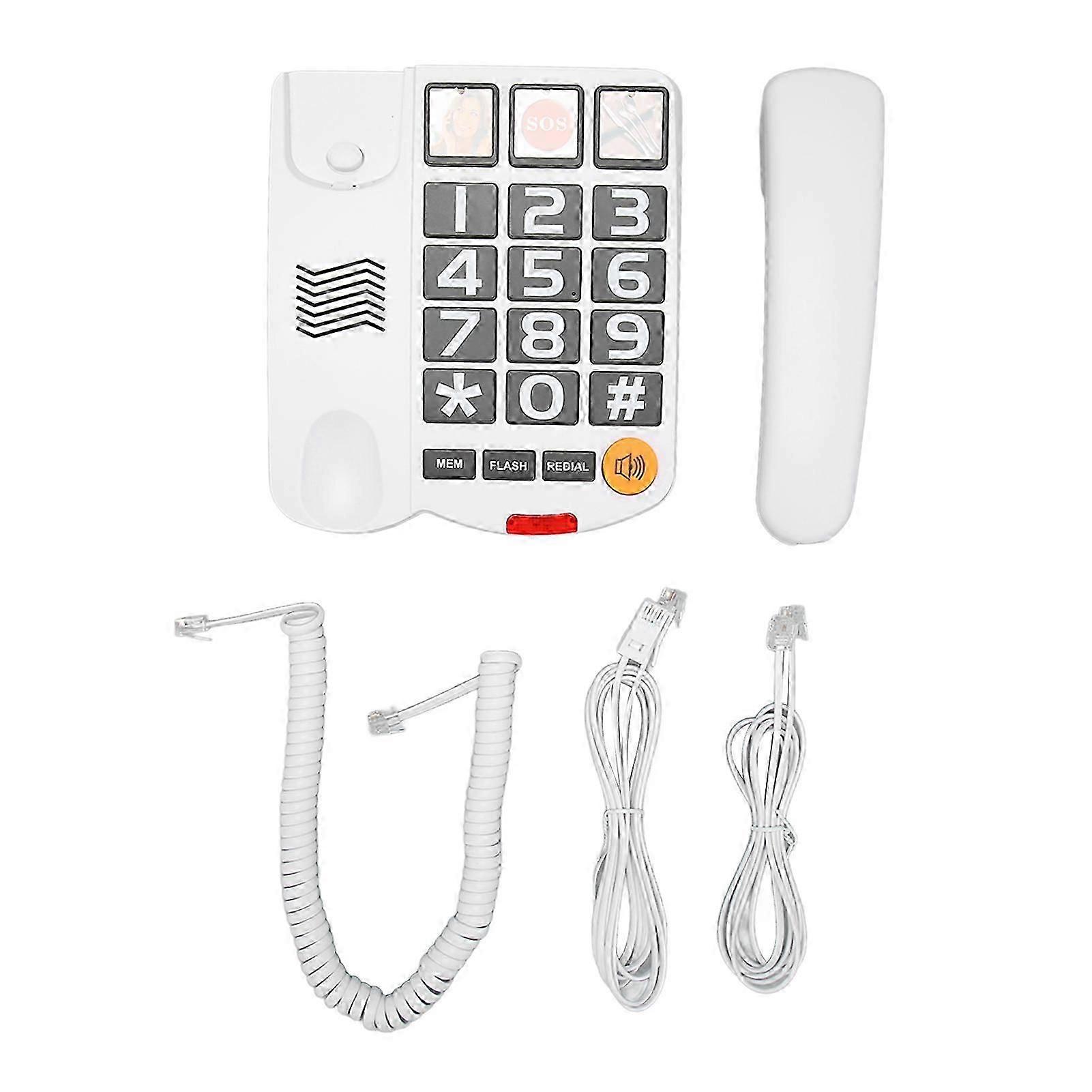 Features 1.Ideal Gifts: Big button phone with large easy to read buttons and larger ringtones, support for one touch dialing or caller ID or hands free, this phone is undoubtedly the perfect gift for grandmothers and grandfathers. 2.Easy to Operate: The corded landline telephone is very easy to operate and has only the necessary features designed for the elderly. Just plug in the power cord that is already included and it will work 3.SOS Number: You can pre store the SOS calling number in this dial button. So when our grandparents need help, they can pick up the handset and dial the 911 button directly to save time. 4.Family Number: Big button telephone has 3 groups of single key family storage, one click dialing to see pictures, and can store family numbers in advance. In this way, every time we old people call, we do not need to find our own phone book number. 5.Large Volume: The ringtone of the corded landline telephone is loud enough, and the handset volume and ringer volume can be adjusted to high or low. The volume can be adjusted in the second step. for clearer hearing. The product supports use when our seniors wear hearing aids. specificationItem Type: Big Button Telephone Material: ABS Model: LD 269SP Function: 1.3 Groups of Single Key Family Storage, See Pictures One Click Dialing 2.10 Group of Double Key Affection Buttons 3. One Touch Distress Dial (User Can Set by Himself) 4. Ringing Indicator Function Flash Function (Flash) 5. Redial Function: (Redial) Storage Function (Mem) 6. Handle Handset Volume Can Be Adjusted in Two Gears (Large and Small Two Gears) (Hi, Low) 7. Ringer Volume Is Large and Small Two Gears Adjustable (Large and Small Two Gears) (Hi, Low) Scope of Application: Used in the Family, Suitable for the Elderly with Impaired Vision and Hearing PackageList 1 x Host 1 x Handset 1 x Handset Cable 1 x USStandard Cable 1 x British Standard Cable 1 x Instruction Manual