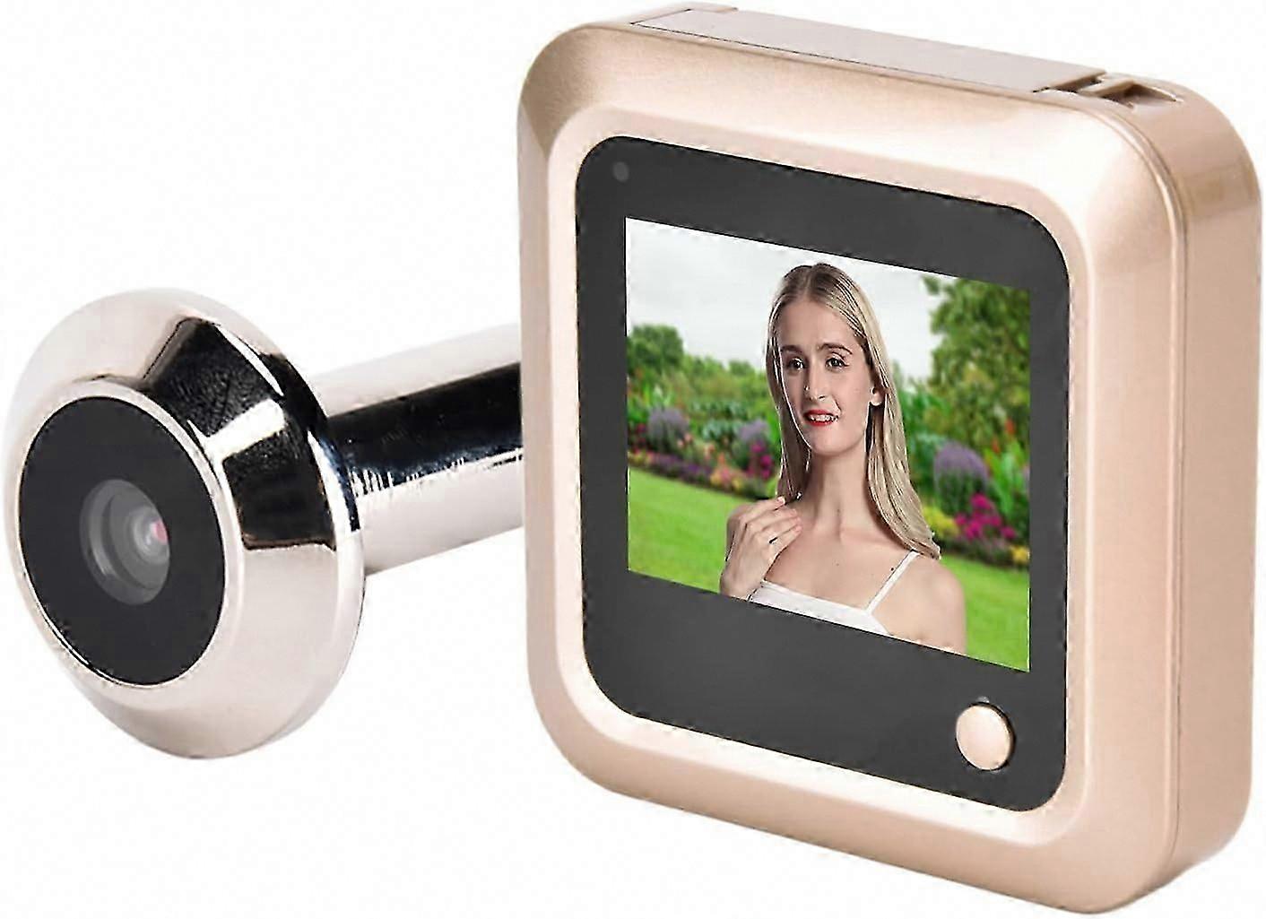 Compatible with:DefaultMaterial type:Material:Number of items:1Power source:PowerSourceIncluded components:IncludesBatteries included?:NoPackage Dimensions:19 x 12 x 4 cm; 209 GramsFunction:1. 2.4 inch screen: ultra-bright 2.4 inch TFT LCD display, displays images clearly and smoothly.2. HD Camera: 0.3MP HD camera for high-definition picture capturing, timely and clear recording and recording visitor information3. 145 Wide Angle The 145 wide angle lens provides you with a large field of view, 24 hours safety monitoring and protects you and your family in all weather conditions.4. Installation Position: The peephole is mounted on the door at the position of the peephole and replaces the optical peephole mirror.5. CLEAR SCREEN DISPLAY The picture outside the door is clearly displayed on the host's screen inside the door, allowing the owner to clearly see the visitors in front of the door at home and take pictures manually.Use:1. Please prepare 3 AAA batteries (not included) before use, insert them and connect the door viewer to the indoor unit.2. Press the on/off button, the screen of the door intercom will light up and the video of the door viewer will be displayed.3. When someone presses the doorbell button on the door viewer, the video camera mode is automatically switched on and at the same time the door intercom rings.Specification:Item Type:Video DoorbellMaterial: ABS + zinc alloy.Use: householdColour: gold.Battery: 3 x AAA batteries (not included)USB power supply: DC5V.screen s2.4 inch screen: 2.4 inch ultra-bright TFT LCD display, shows images clearly and smoothly.HD Camera: 0.3MP HD camera for high resolution image capture, timely and clear recording and recording visitor information145 Wide Angle - The 145 wide angle lens offers you a wide field of view, 24-hour security monitoring and protects you and your family in any weather.Installation position: the peephole is installed in the position of the door viewer on the door and replaces the optical door viewer.Clear screen display: the image outside the door is clearly displayed on the host screen inside the door, so the owner can clearly see visitors in front of the door at home and take pictures manually.2.4 inch screen: 2.4 inch ultra-bright TFT LCD display, shows images clearly and smoothly.HD Camera: 0.3MP HD camera for high resolution image capture, timely and clear recording and recording visitor information145 Wide Angle - The 145 wide angle lens offers you a wide field of view, 24-hour security monitoring and protects you and your family in any weather.Installation position: the peephole is installed in the position of the door viewer on the door and replaces the optical door viewer.Clear screen display: the image outside the door is clearly displayed on the host screen inside the door, so the owner can clearly see visitors in front of the door at home and take pictures manually.
