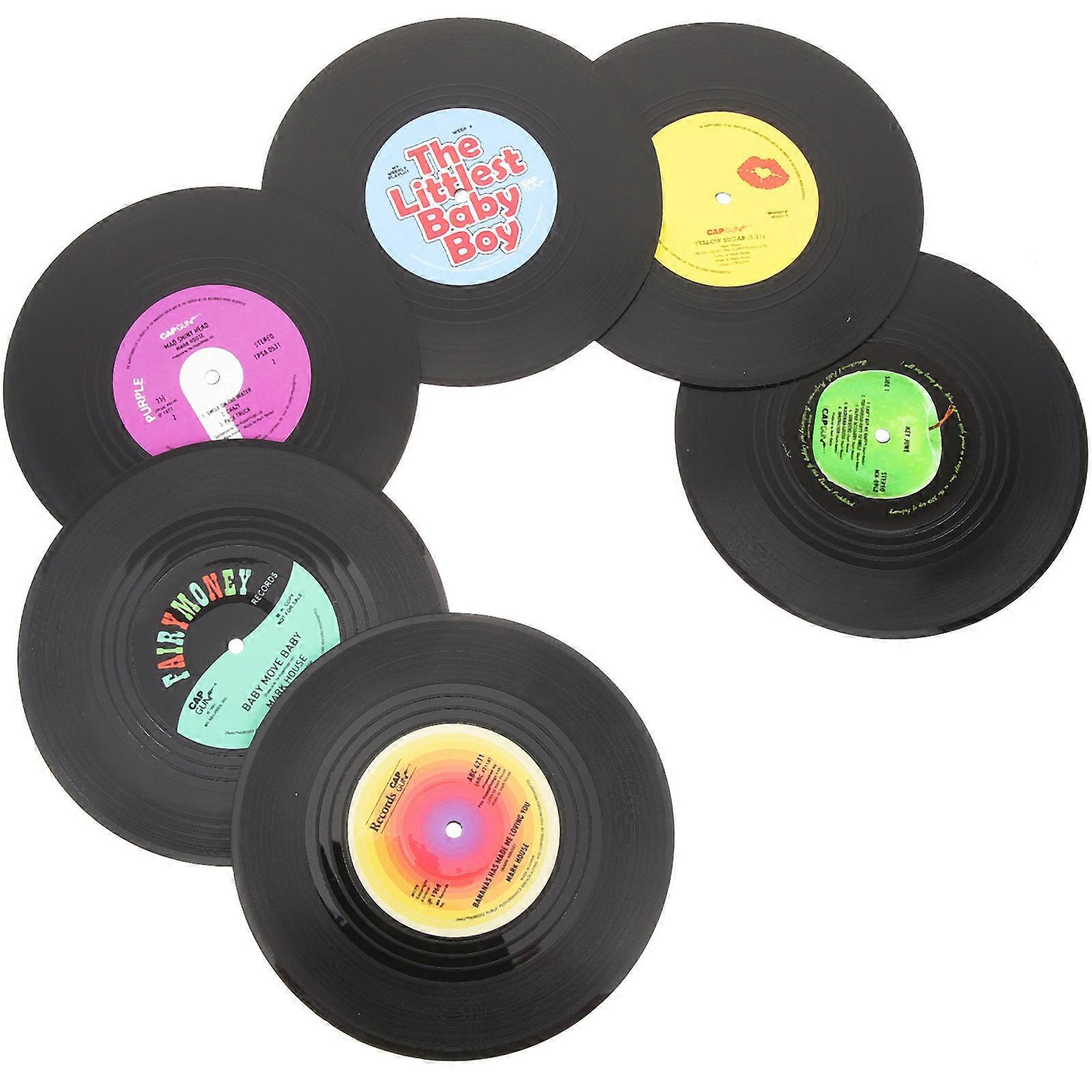 Vinyl Record Coasters Cup Mat Abs Saucer Cup Mat Round Anti Skid Heat Resistant Protect Desktop Decorate Home Desktop 6Pcs