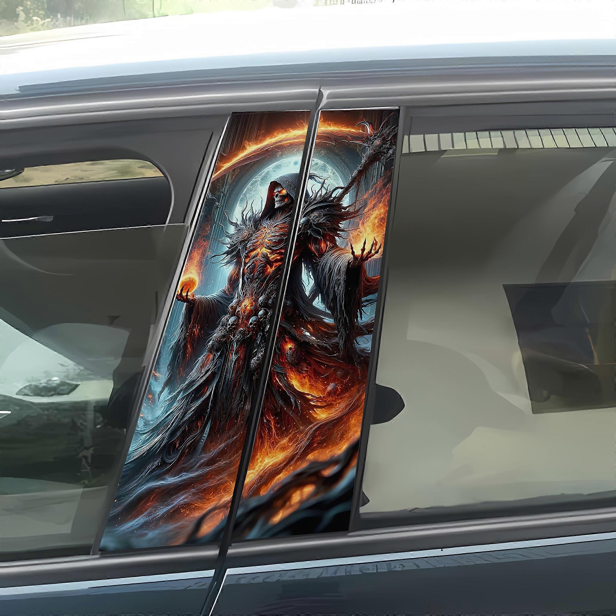Set of 2 vinyl car door stickers, self-adhesive anime skull monster theme, front B-pillar devil stickers