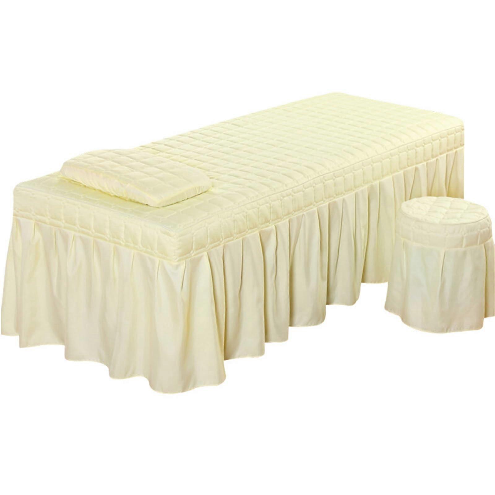 Beauty Salon Massage Table Set 3Pcs Breath Hole Bed Sheet Skirt, Pillowcase Stool Cover, Purple 73x28In Beige 75x32In