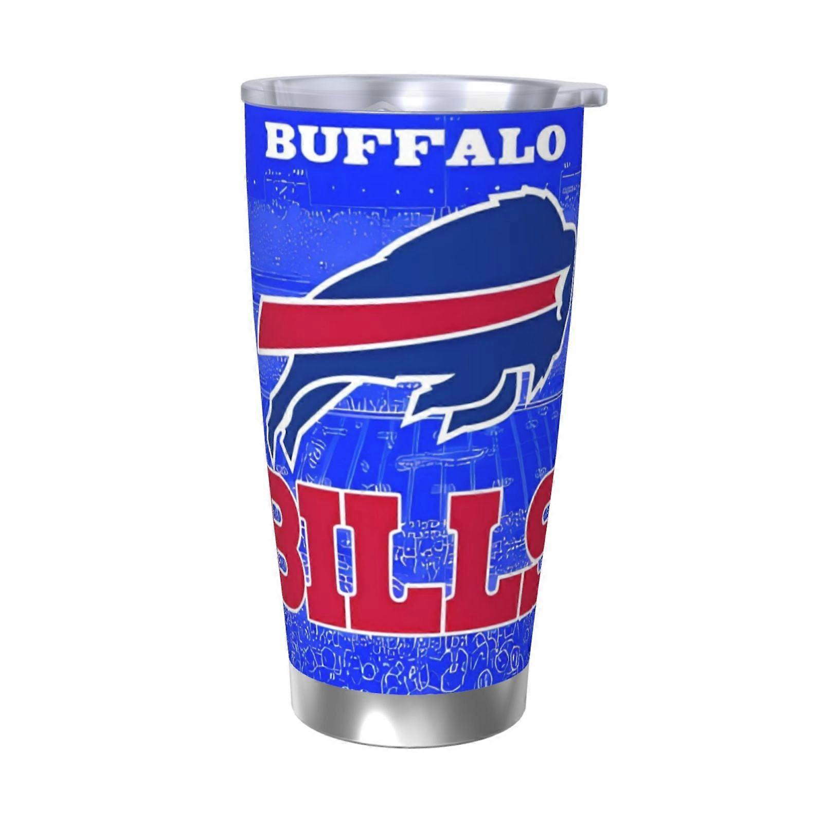 Bills Football Team 20oz Stainless Steel Thermos Cup with Lid & Straw - Durable Car Cup for Hot/Cold Drinks - Sports & Holiday Gift