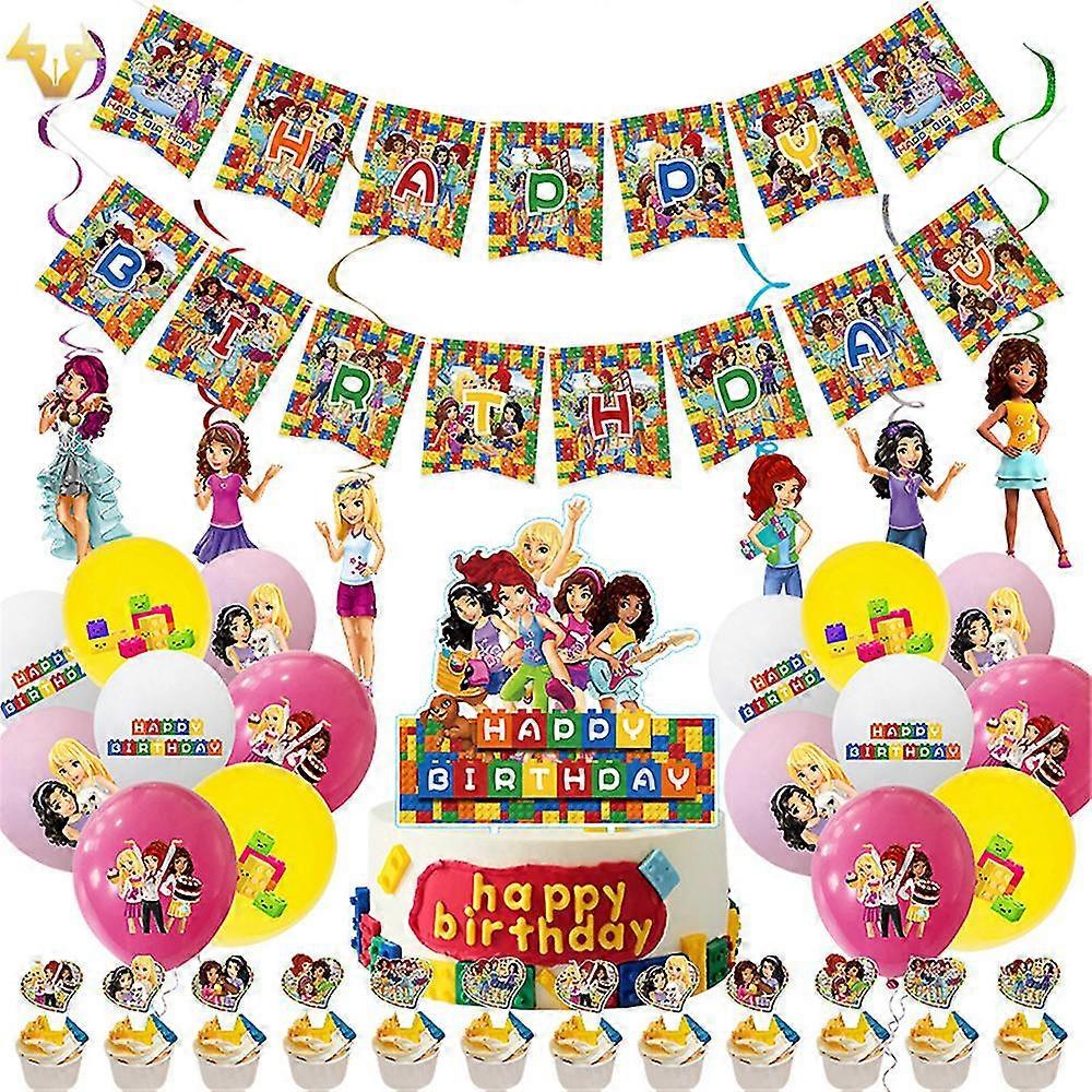 Building Blocks Theme Balloons Banner Cake Topper Swirls Set Kids Girls Birthday Party Decor Supplies