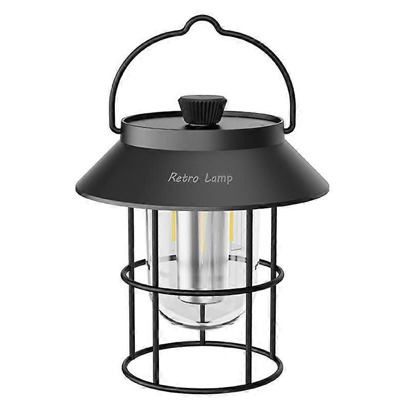 Vintage Iron Art Rechargeable Camping LED Light Portable Outdoor Tent Lantern Hanging Lamp-Black