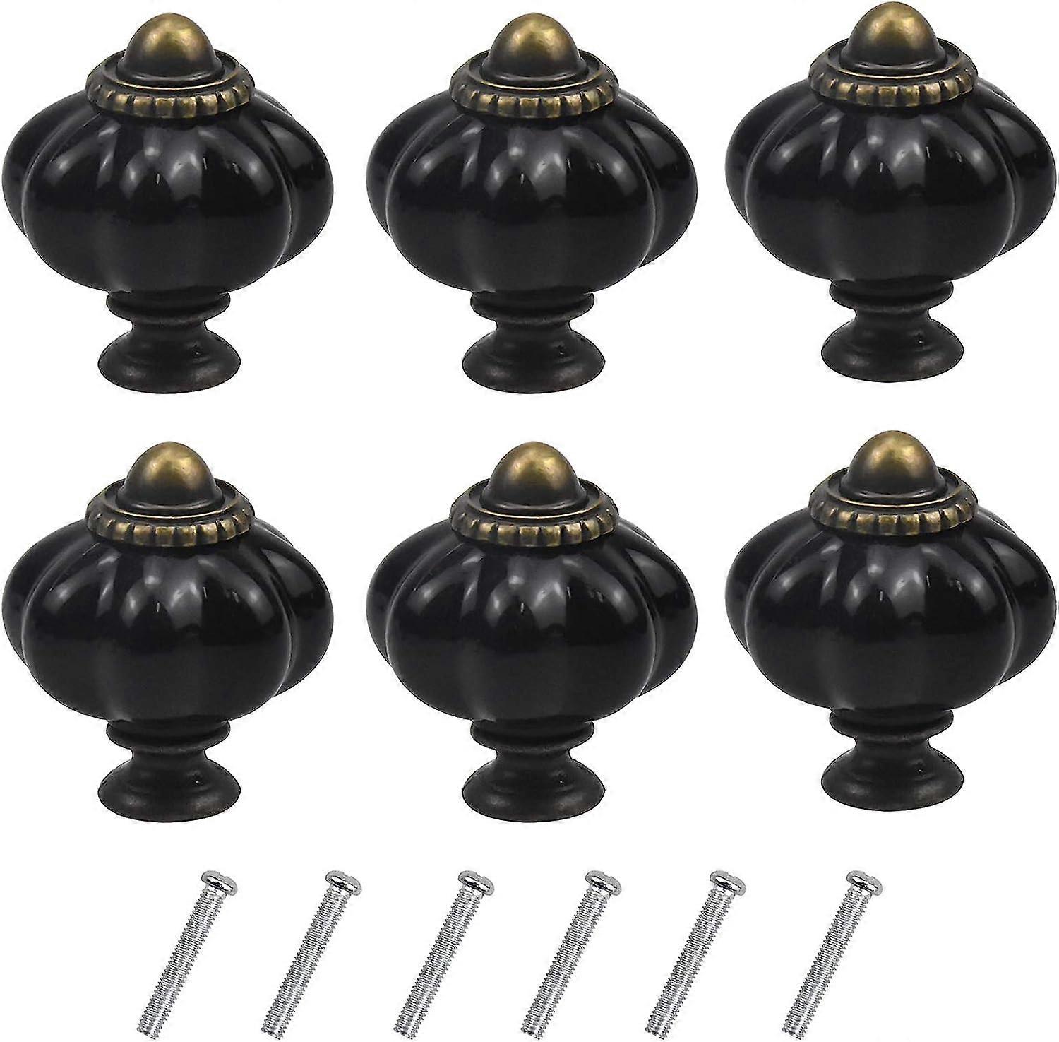 Vintage Pumpkin Cabinet Knobs, Antique Drawer Knobs Acrylic Handles Pulls with Screws for Cupboard Dresser Furniture Closet Wardrobe (Black-6 Pcs)