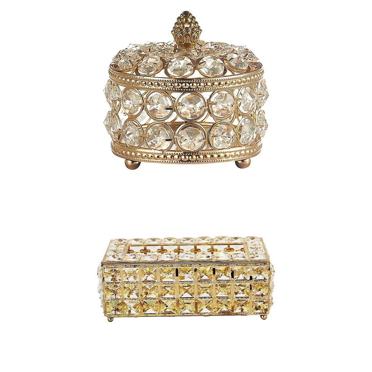 Description: Vintage trinket cabinet jewellery case / storage box: Suitable for crafts,jewelry,necklace, bracelet, bangle, earrings, charms, watch, tiny tools storage This tissue box cover beads with sparkly crystals intricately and well handcraft looks twinkling, gorgeous. It is not only a tissue box, but also a elegant decoration in your bathrooms, restaurant, office, household, automotive. This sparkly clear glass crystal tissue box is can be not only used in home, like bathroom, dining room, living room, dresser, night stand, but also perfect for a wedding table centerpiece or venue decoration. It's easy to take the tissues out of the original packaging and placed into this crystal tissue holder. A stylish and practical way to store your tissues and keep close to hand, and it fits easily into any decor. Perfect for Home deor with vintage collection. A great gift for kids and families Size Chart: Material: Metal crystal Size: Rectangle Tissue Box: 26 x 13 x 11 cm/10.24 x 5.12 x 4.33 in Round Jewelry Box: 10x10cm Package Includes: 1 Piece Tissue Box 1 Piece jewelry box Note: Due to the difference between different monitors, the picture may not reflect the actual color of the item. Due to manual measurement, there may be 1-2cm error in size.