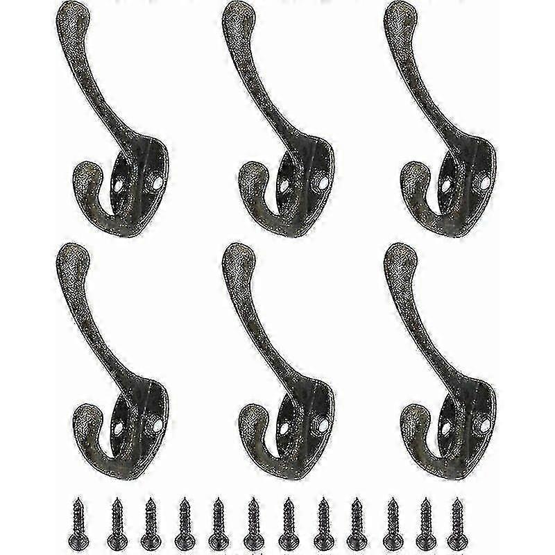 Vintage Coat Hooks 6-Pack, Retro Metal Wall Hooks, Bronze Screw Hat Rack, Clothes Hanger, Decorative Coat Rack, One Size