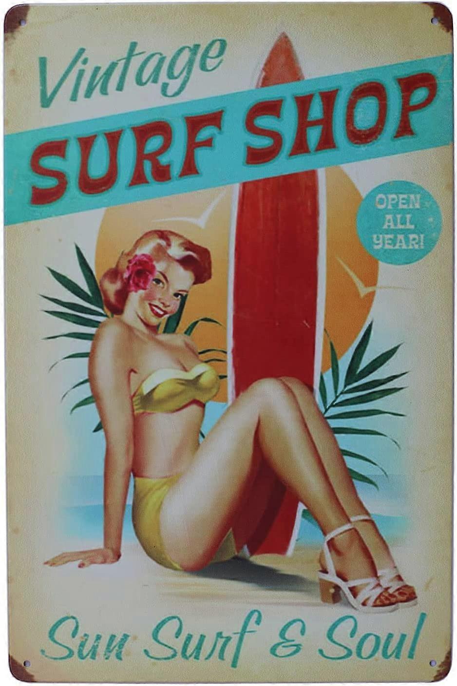 Vintage Surf Shop Metal Tin Sign, Sun Surfer Surfboard Plate Plaque License Plate Home Bar Wall Decor