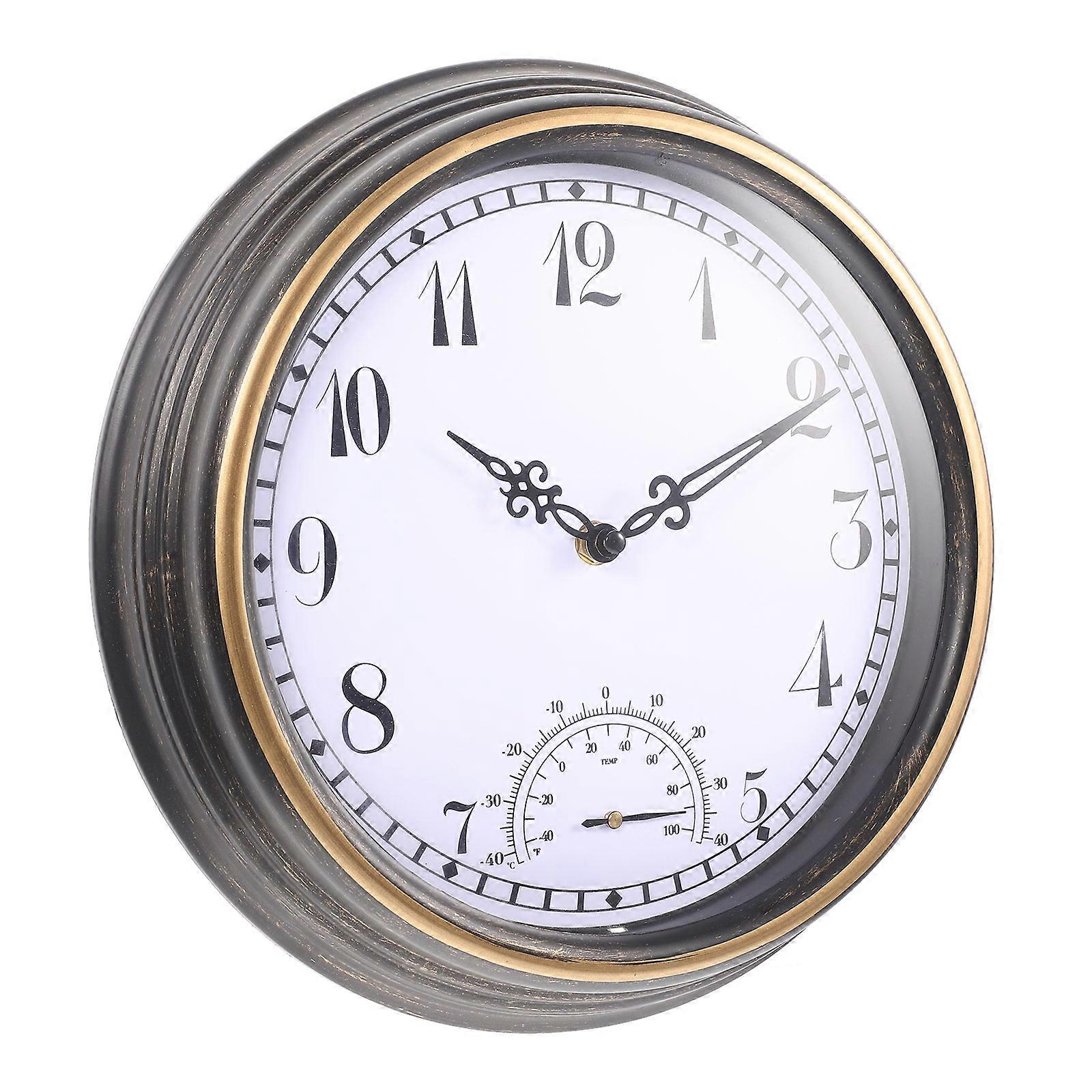 Vintage Digital Design Indoor Outdoor Use Waterproof Clock With Thermometer Round Shape Plastic Material 12×12×2in 1Pcs