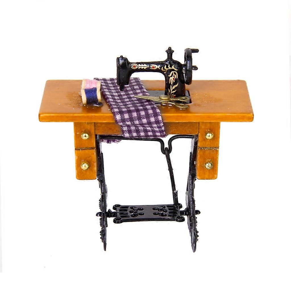 Vintage Doll House Miniature Furniture Sewing Machine W Accessories Wood & Metal