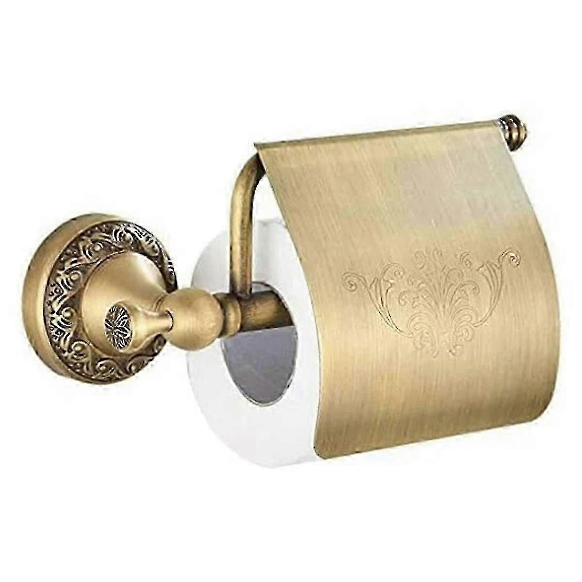 Vintage Toilet Paper Holder, Solid Brass Bathroom Tissue Dispenser, Wall Mounted Retro Paper Roll Holder with Cover, Elegant Metal Bathroom Decor