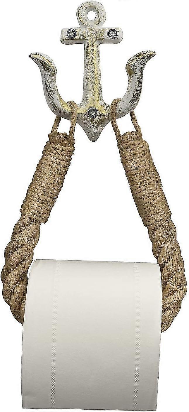 Vintage Toilet Roll Holder - Toilet Paper Holder For Wc - Industrial Rope - For Bathroom - With Drilling (white)