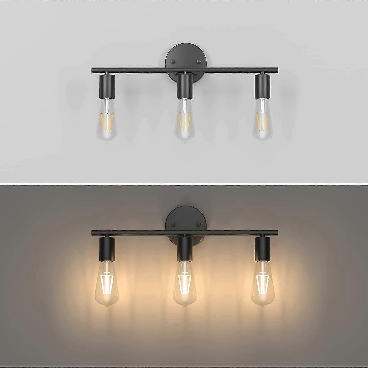 Vintage Bathroom Mirror Lamp 3 Lights Black Metal Wall Sconce Indoor Mirror Light Bathroom, Length: 40cm, E26 socket, bulb not included