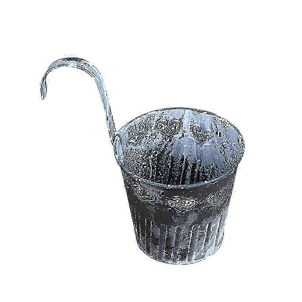 Vintage Hanging Flower Pot - Retro Metal Iron Bucket with Hooks for Balcony